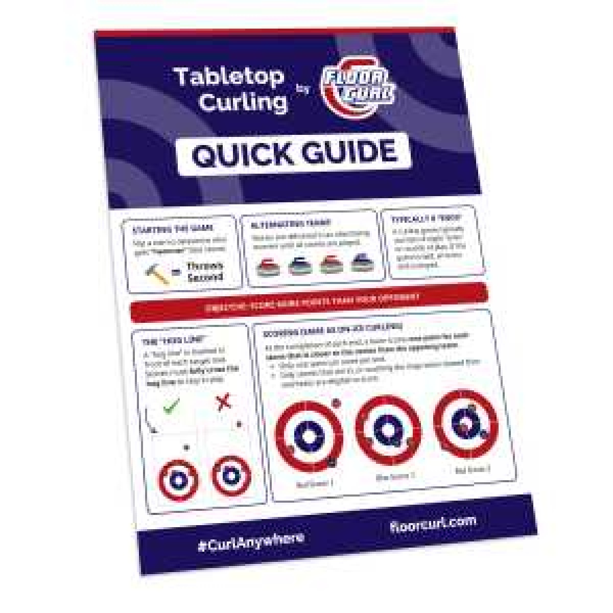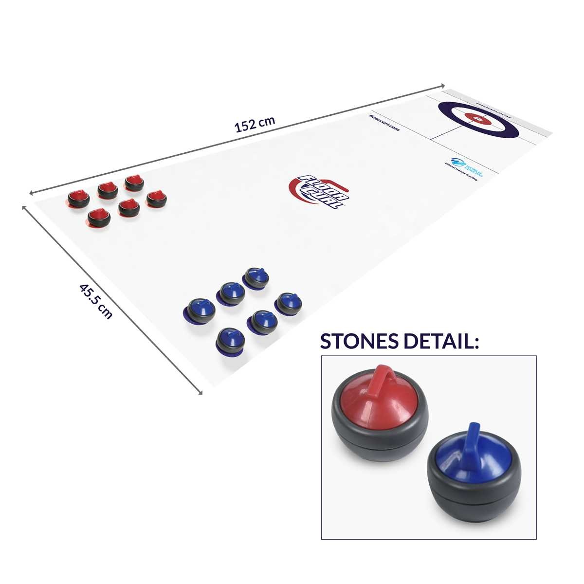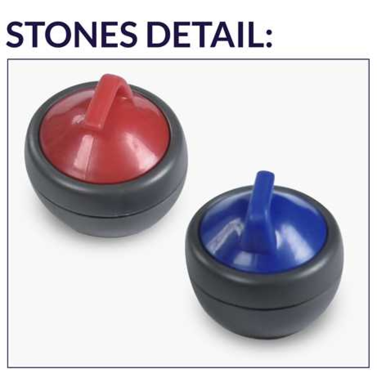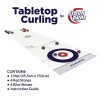 Contains: 1 Bin: -2 Tabletop Curling Mats -4 sets of 6 Tapletop Curling rocks (12 red rocks & 12 blue rocks)
